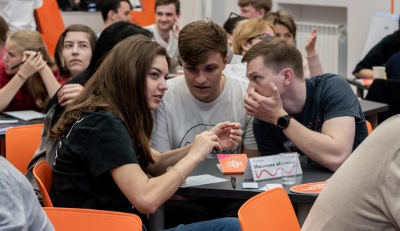 Сразу после мастер-класса гости центра сыграли в игру «Профессионалы». Им пришлось проявить свои ораторские способности, чтобы рассказать о профессиях экономиста, инженера, капитана атомного ледокола и других, не используя однокоренных слов. А кто-то в это время практиковался, фиксируя эмоции участников фотокамерой.