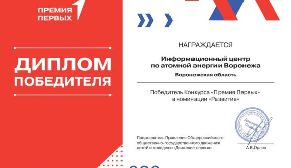 27 марта в ходе IV Съезда Движения Первых состоялось торжественное награждение команды Информационного центра по атомной энергии Воронежа за 1 место в номинации «Развитие», посвящённой проектам и местам в сфере образования, воспитания и развития детей и молодёжи.