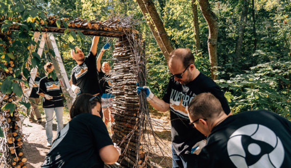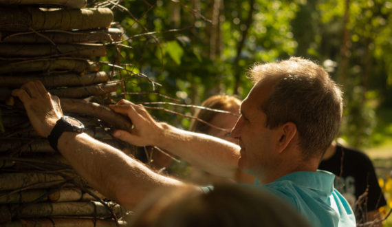 Волонтёры Инжинирингового дивизиона Росатома и все желающие приняли участие в специально подготовленном для фестиваля IN.Borg практико-ориентированном треке: после мастер-класса «Раскрой в себе креативность», который провёл программный директор АНО «ИЦАО» Максим Гревцев, участники создали арт-объект из веток засохших деревьев парка «Монрепо», вписав его в природный ландшафт.