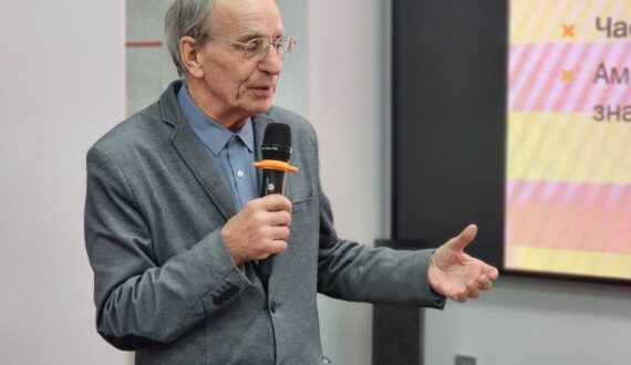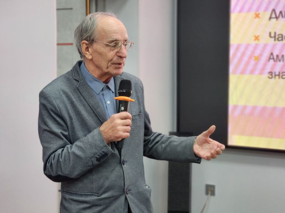 Профессор Балтийского федерального университета имени Иммануила Канта Михаил Никитин связал концертную часть с физикой звука и показал, как он распространяется в воздухе. Для наглядности зрители из зала изображали молекулы воздуха, сближаясь и расходясь так же, как это происходит при прохождении звуковой волны. Профессор объяснил, какие частоты и уровни звука характерны для человеческого голоса и музыкальных инструментов, почему в шумных средах требуется защита слуха и как выглядят базовые формулы, описывающие звуковые колебания.