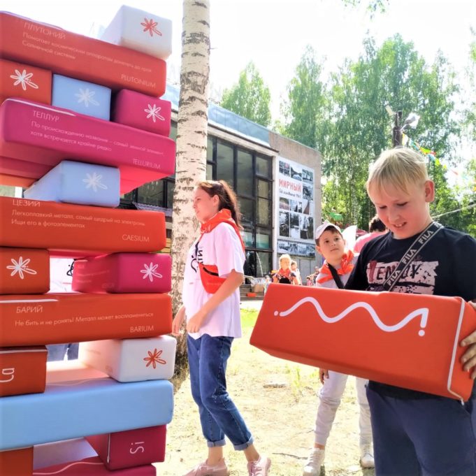 Информационный центр по атомной энергии Кирова организовал в центре поселения «Научную лужайку». Это научный нон-стоп на свежем воздухе, где горожане сыграли в интеллектуальные и интерактивные игры. Жители Мирного проверили свои знания в экологических викторинах, узнали о том, какие химические вещества задействованы на АЭС, попробовали свои силы в физических напольных шашках, научились сохранять равновесие на балансбордах и вспомнили, когда были срвершены те или иные научные открытия.