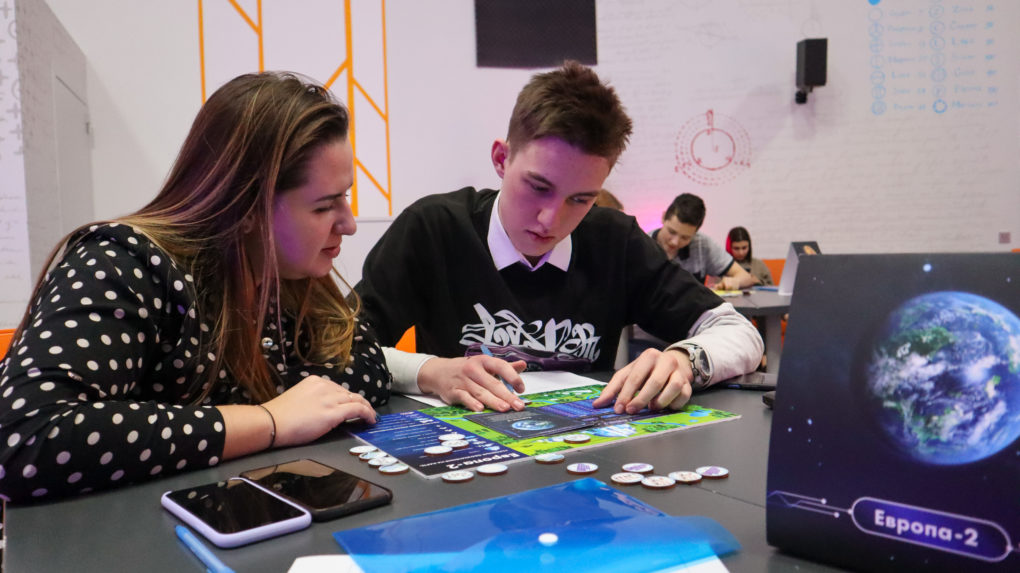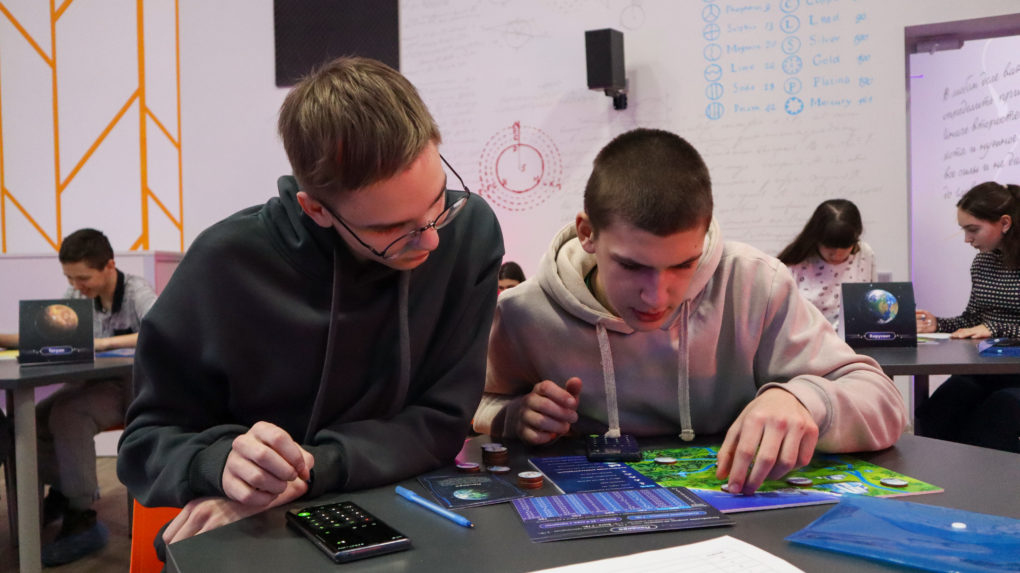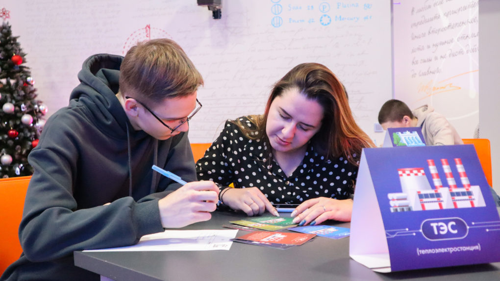 Изучив плюсы и минусы работы электростанций, команды сыграли в кейс-игру «Колонизация планет». Цель – построить энергосеть заданной мощности (расставив фишки с видами электростанций на выбранных точках), не выходя при этом за имеющийся бюджет, и обосновать свой выбор.