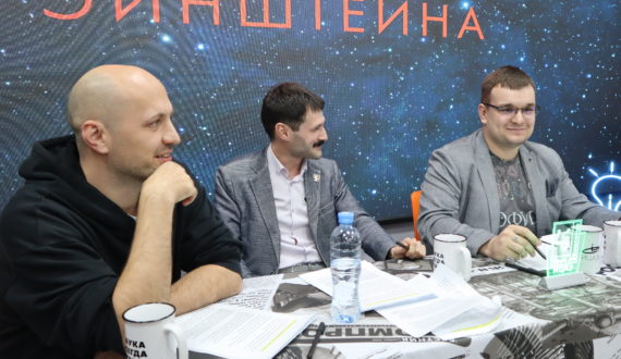 Завершился марафон событий 18 ноября научно-популярным ток-шоу «Язык Эйнштейна». Последние новости из мира науки обсудили приглашённые эксперты: кандидат биологических наук, заведующий лабораторией генетики развития Института цитологии и генетики СО РАН Нариман Баттулин, кандидат физико-математических наук, руководитель Лаборатории астрономии КЮТ СО РАН, доцент НГПУ, ведущий математик Института теоретической и прикладной механики СО РАН Дмитрий Эпштейн и аспирант кафедры геофизики геолого-геофизического факультета НГУ, инженер Научно-образовательного центра «Эволюция Земли» НГУ. Владимир Гурьев.