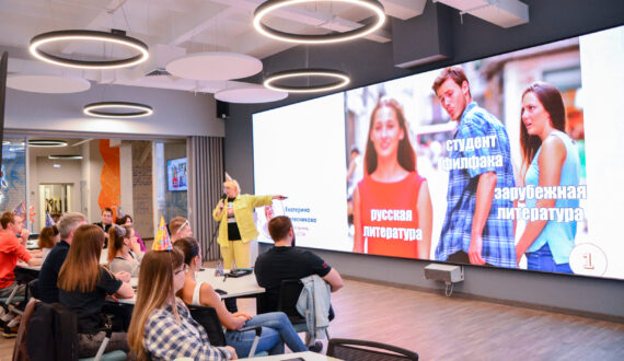 Екатерина Колесникова, кандидат филологических наук, литературовед, ректор СГТИ, представила мемы на тему русского языка и литературы. «Когда мы приходим учиться на филфак на первом курсе, то зарубежная литература нас очаровывает. Мы не можем от неё оторваться и полностью влюбляемся. Так происходит, поскольку в школьные годы мы её практически не изучаем, а зарубежной литературы на самом деле безграничное количество. А из русской литературы в это время, до 3-го курса, изучается устное народное творчество и литература до 19 века. Читать и понимать это всё очень сложно. Но начиная с третьего курса, когда идёт изучение русской литературы 19 века, всё меняется. Русская литература просто завораживает. Каждый студент филфака находит своего любимого автора и произведение сразу же. После того, как окунулся во всю глубину и проблематику, которая есть в русской литературе, любовь к лёгкой зарубежной литературе испаряется», — рассказала филолог.
