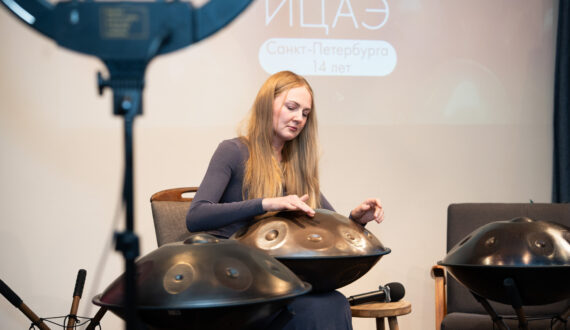 Начался вечер с лекции о необычном и относительно новом музыкальном инструменте – ханге. Музыкант и педагог Татьяна Яковлева не только рассказала об инструменте, но и позволила слушателям проникнуться прекрасными мелодиями, которые она сыграла.