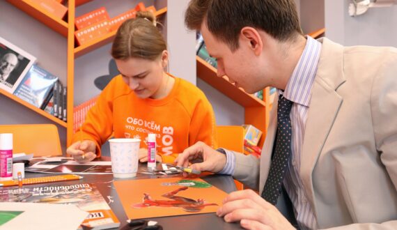 Второй день празднования дня рождения ИЦАЭ СПб состоялся 24 апреля. Он начался с увлекательного мастер-класса «Научная открытка» от художницы Анны Тараскиной. Она показала несколько примеров коллажей и помогла участникам создать свои собственные. У гостей получились абсолютно разные работы: кто-то сделал забавную поздравительную открытку для ИЦАЭ, в которой представил сотрудников в виде супергероя «ИЦАЭмэн», а кто-то в своём коллаже отразил все важные вехи в развитии атомной отрасли.