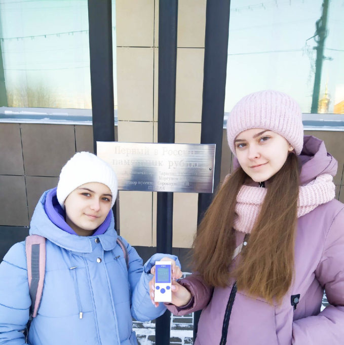С 10 по 13 февраля они посетили свыше 25 точек города – среди них были высшие и средние учебные заведения, поликлиники и больницы, культурно-досуговые учреждения, городские парки и скверы, а также места наибольшего скопления людей. В каждой точке ученицы 10 В и куратор проекта, учитель физики Михаил Анатольевич Тонеев замерили радиационный фон.