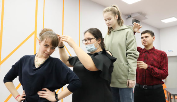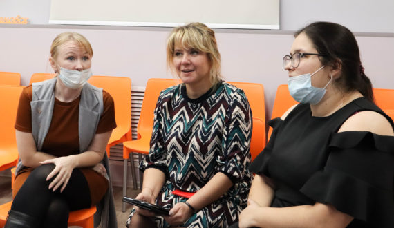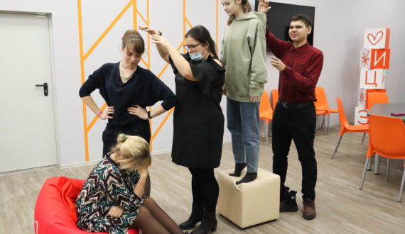 С методологией «Форум-Театра» — способа выстраивания групповой коммуникации с помощью импровизации – познакомила гостей центра учитель английского языка Губернаторского лицея №101, педагог-наставник, тренер по межкультурной коммуникации Любовь Савельева.