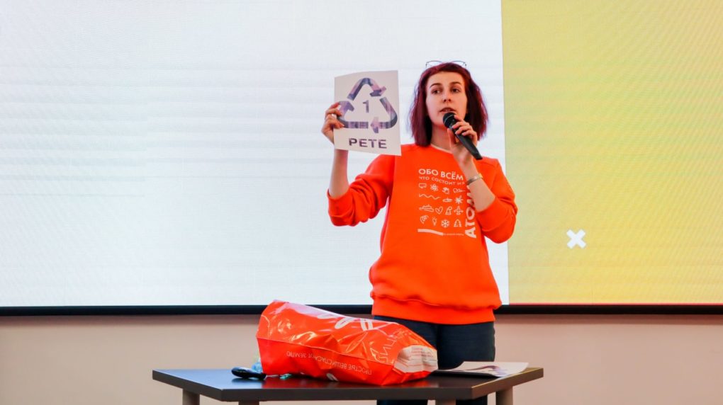 Мини-лекцию про пластик прочитала биолог- эколог Александра Мураткина, менеджер развития ИЦАЭ Нижнего Новгорода. «Если вы начали или планируете сортировать отходы, стоит разобраться, что можно сдавать на переработку, а что нет. Треугольники на упаковке с цифрами внутри — ваш верный помощник. Цифра помогает понять, какой это вид упаковки и можно ли его сдать. Буквенная аббревиатура под треугольниками обозначает тип материала, например, PP (полипропилен)», — объяснила Александра.