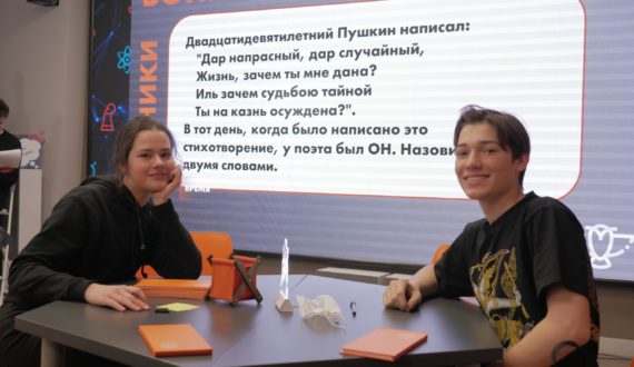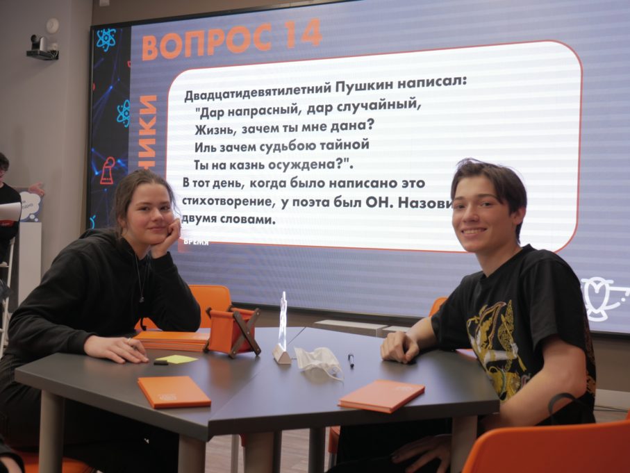 Начался ИЦАЭ OPEN с интеллектуального турнира по-спортивному «Что? Где? Когда?» среди учащихся 8-х классов. По условиям состязаний участники письменно ответили на 15 вопросов по 3 темам: отдых, праздники и еда. Школьники узнали, что кокосовые орехи во время тропической бури сравниваются с пушечными ядрами, а также что у многих скоморохов в древности была погремушка из бычьего пузыря, в котором находился горох. Отсюда пошло выражение «шут гороховый».