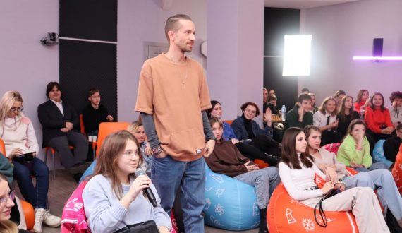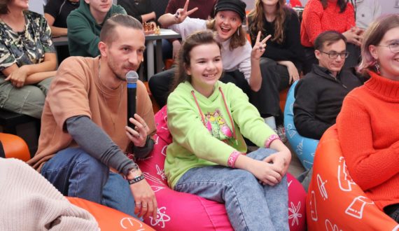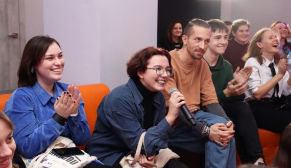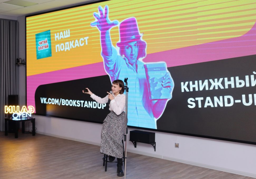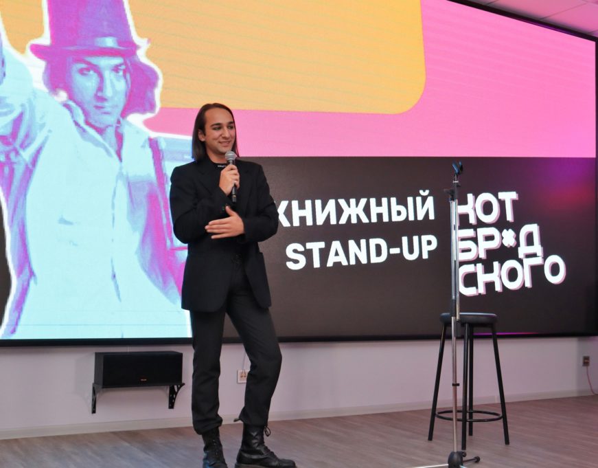 Вечер продолжили выступления резидентов книжного стендапа «Кот Бродского: говорят подростки» в Воронеже. О своих переживаниях, прочитанных книгах и городских наблюдениях гостям центра рассказали Ева Ким, Екатерина Зенина, Лев Брагуца, Савелий Булатов и Ева Логинова.