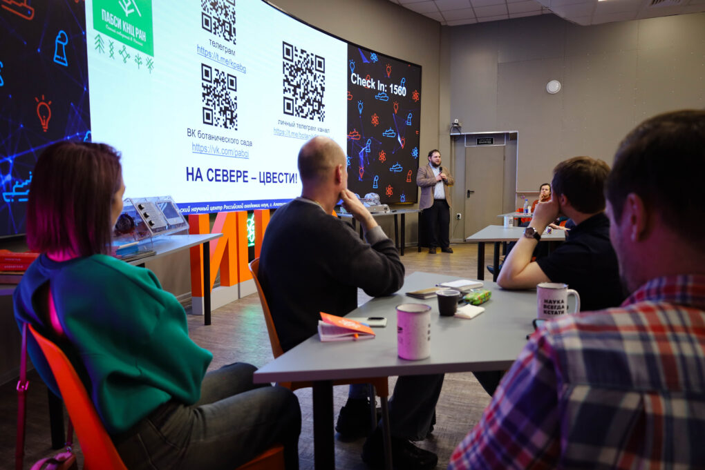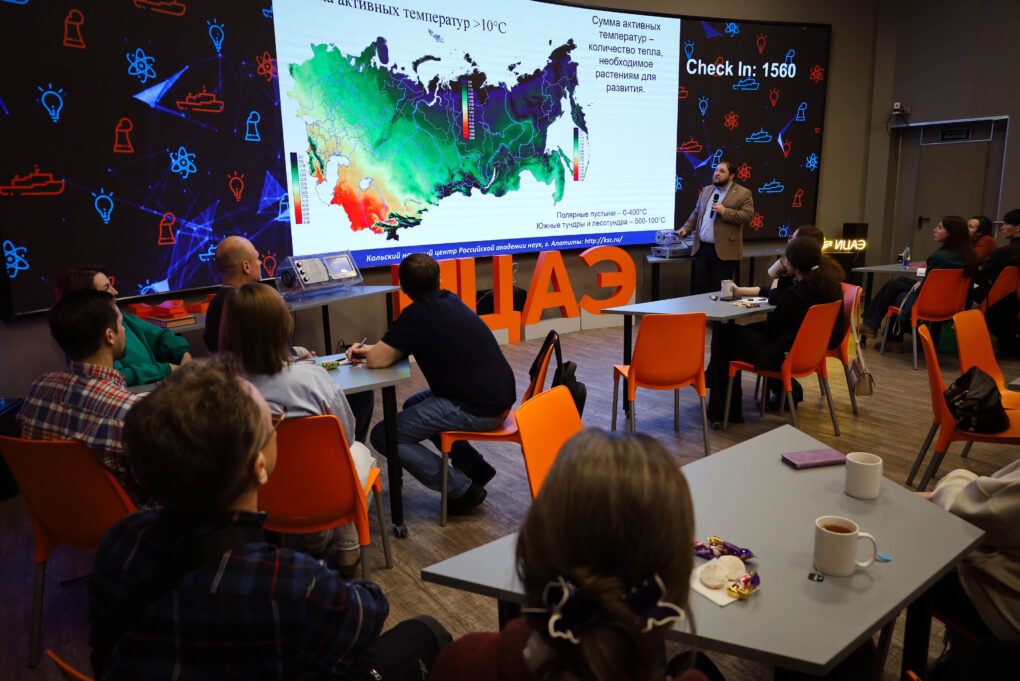 Центральным событием «ИЦАЭ OPEN» стала лекция Евгения Боровичёва, директора Полярно-альпийского ботанического сада-института им. Н.А. Аврорина, заместителя по научной работе генерального директора Кольского научного центра РАН. В своем выступлении Евгений Боровичёв кратко познакомил слушателей с историей растениеводства и озеленения на евере и рассказал о проблемах, с которыми сталкиваются современные ботаники.