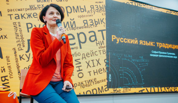 Заключительным событием стал public talk «Русский язык: традиции и будущее» вместе с кандидатом филологических наук, доцентом кафедры романо-германской и классической филологии, председателем городской экспертной комиссии «Тотального диктанта» Софьей Сухановой.