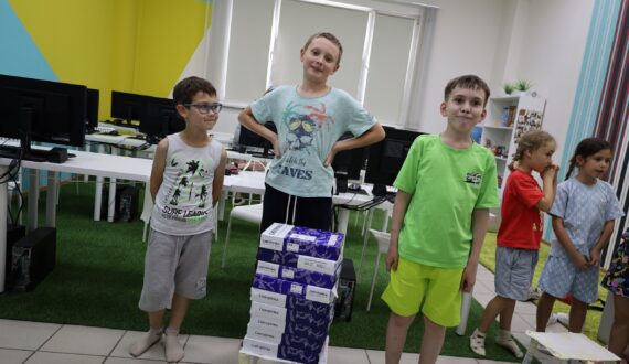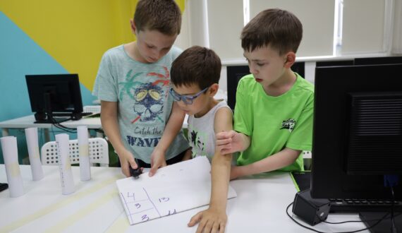 После теоретической части участники поделились на команды и попробовали смастерить табуретки из макулатуры и бумажного скотча. Для увеличения прочности изделия юные мастера отправлялись в «магазин» и «докупали» дополнительные материалы с помощью знаний, отвечая на вопросы «Физики для чайников». Когда все табуретки были готовы, началась их проверка на прочность. Самая крепкая смогла выдержать 22.5 килограмма!