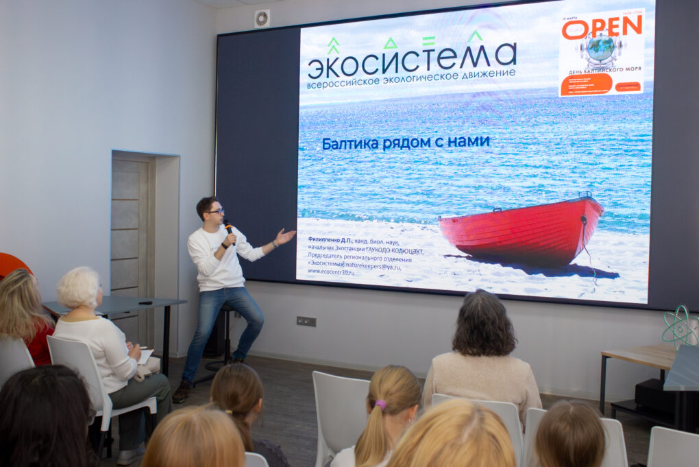 Вечер открыла лекция «Экология Балтики» Дмитрия Филиппенко – кандидата биологических наук, начальника Экостанции ГАУКОДО КОДЮЦЭКТ и председателя регионального отделения всероссийского экологического движения «Экосистема».
