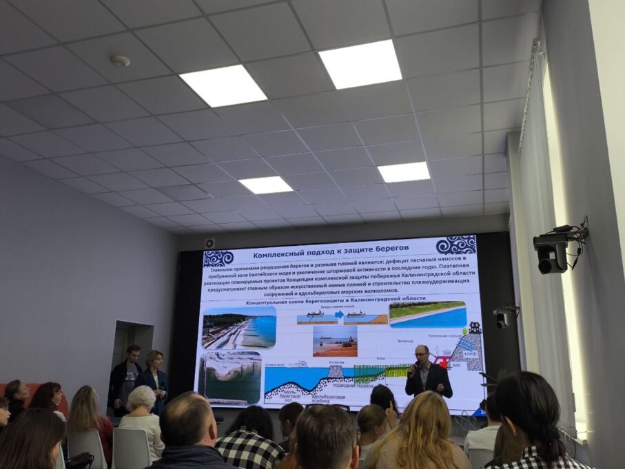 Вторая лекция вызвала шквал вопросов из зала. Аудитория была впечатлена масштабом мониторинга — более 200 точек наблюдения вдоль побережья, — и захотела узнать, какие инструменты используются для таких измерений. Завершил обсуждение вопрос о международном опыте берегозащиты: как справляются с похожими задачами другие балтийские страны и что из этого опыта уже применяется в Калининградской области.