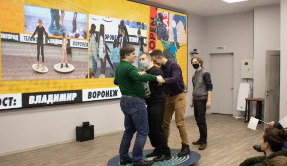 От олимпийских рекордов обсуждение перешло к теме технологического инжиниринга и сооружения уникальных спортивных объектов. Зрители снова перенеслись из Нижнего Новгорода в Воронеж. Юлия Седых, основательница архитектурного бюро TOU!ARCHITECTS, выпускница программы Архитекторы.рф, рассказала о том, как совместить функциональность, комфорт, безопасность и эстетику при строительстве стадионов, трамплинов и гоночных трасс. Гостем центра во Воронеже стала и Виктория Комова — российская гимнастка, заслуженный мастер спорта России, двукратный серебряный призёр Олимпийских игр 2012 года в Лондоне в командном первенстве и многоборье.  Гости ИЦАЭ в трёх городах стали не только зрителями, но и активными участниками телемоста: они попробовали держать равновесие на балансбордах, поделились своими достижениями по количеству пройденных шагов и запустили самую длинную волну поддержки российских спортсменов, которая уже наверняка дошла до Пекина!
