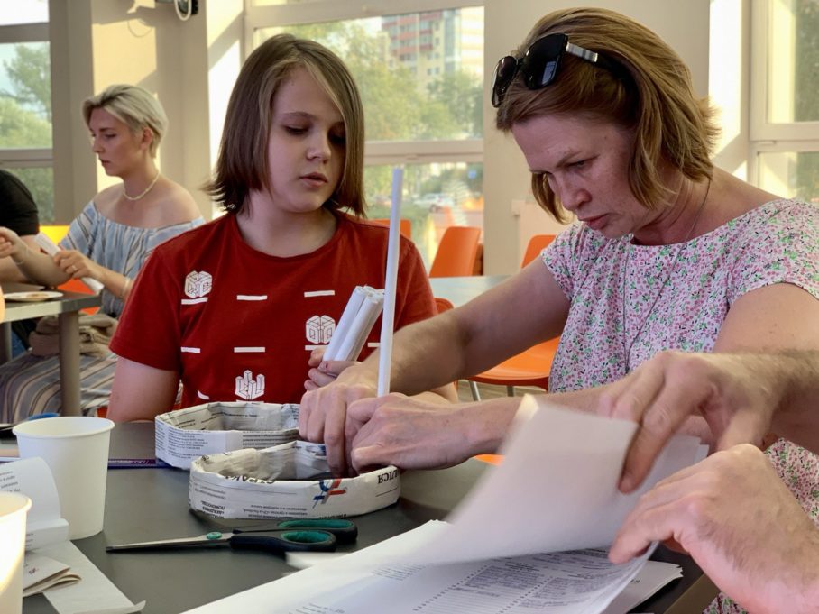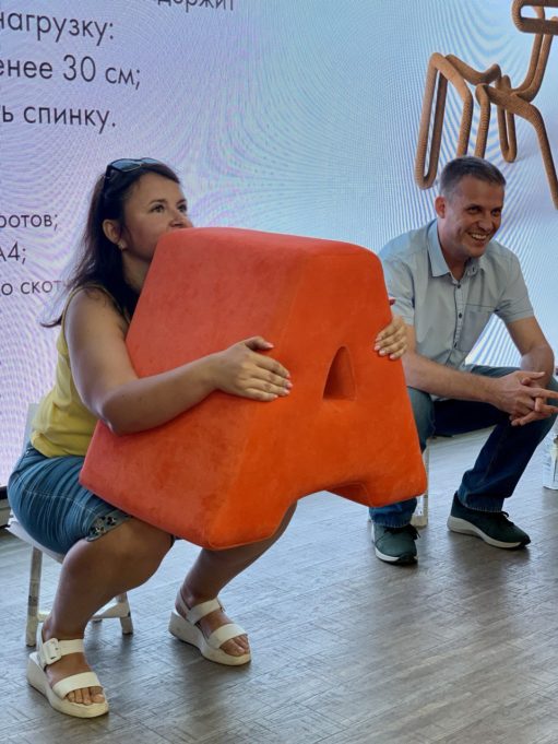 Сразу после встречи руководитель ИЦАЭ Челябинска Лариса Матвеева провела мастер-класс «Сопромат для чайников». Работая руками и используя только фантазию, бумагу и скотч, гости центра соревновались в создании уникальных стульев, грузоподъёмность которых и протестировали в итоге. Победила команда семьи Чебаковых, самодельный стул которых выдержал 201 кг.