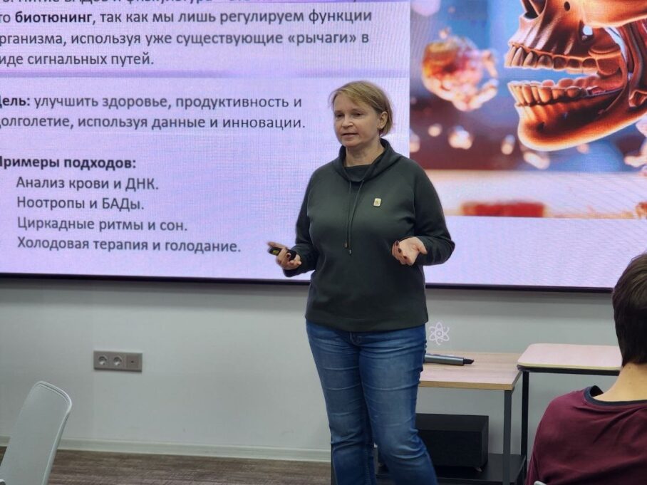 Особый интерес у аудитории вызвали примеры из природы — голые землекопы, демонстрирующие уникальные механизмы долголетия и устойчивости к возрастным изменениям. Не меньше внимания привлекли современные инструменты самоконтроля — носимые устройства для мониторинга сна, уровня стресса и метаболических показателей, включая непрерывные глюкометры и биосенсоры. Продолжая тему, эксперт рассмотрела биохимические и генетические аспекты старения: роль теломеразы, эпигенетические маркеры и возможности их коррекции через питание, физическую активность и ноотропные средства. Отдельный акцент был сделан на феномене «гаражного» биохакинга — экспериментах энтузиастов, использующих лабораторные технологии вне академических институтов, что поднимает вопросы биобезопасности и этики.
