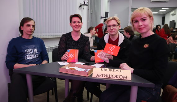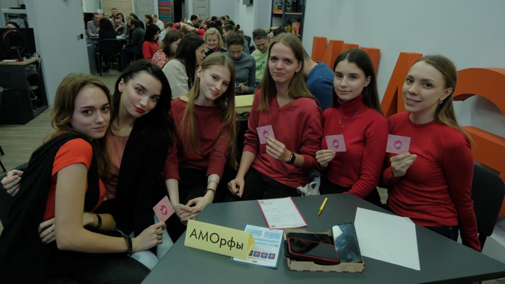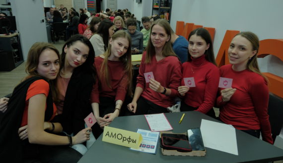 В рамках тематики февральского турнира участники могли прийти в одежде с красными элементами и подарить друг другу специальные научные «валентинки», которые можно было заполнить до начала или даже во время игры. Так, например, девушки из команды «АМОрфы» основательно подготовились: девушки пришли в одежде разных оттенков красного цвета, соблюдая дресс-код, а школьники из команды «Чемодан Ньюта» были в головных уборах.