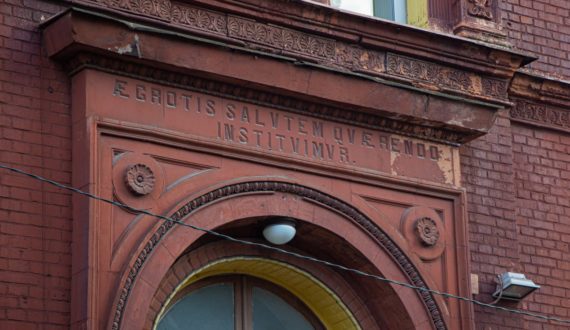 Затем участники зашли в комплекс университетской больницы, которая была построена в 60-е годы XIX века по инициативе профессора Вагнера. Над воротами даже сейчас можно увидеть надпись «Медицинская университетская клиника».