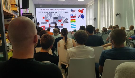 Слушатели узнали, что электромобилю надо в шесть раз больше ресурсов, чем бензиновому автомобилю. Основная их часть приходится на литий-ионный аккумулятор. Так, в среднем батарея Tesla емкостью 60 кВт/ч обеспечивает запас хода 330 км, а весит 385 кг. Среди ключевых металлов главным остается литий. В последнее время его называют «белой нефтью», ведь литий-ионные батареи – основа будущего энергоперехода. Сейчас литий больше всего добывают в Боливии, Чили и Аргентине. В России крупнейшим месторождением считается Колмозерское, расположенное в Мурманской области. Его совместную разработку российские компании «Росатом» и «Норникель» начнут уже в ближайшие годы.