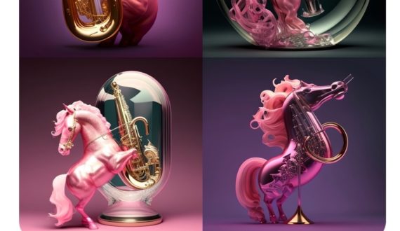 Спикер провёл мастер-класс, как лучше написать грамотный запрос, и по ключевым словам от посетителей ИЦАЭ составил текст для генерации изображения в нейросети. В итоге получился рисунок, где изображена «розовая лошадь с саксофоном и огромной гривой в стакане». Практический навык впоследствии отрабатывала команда ИЦАЭ при создании изображений для социальных сетей.