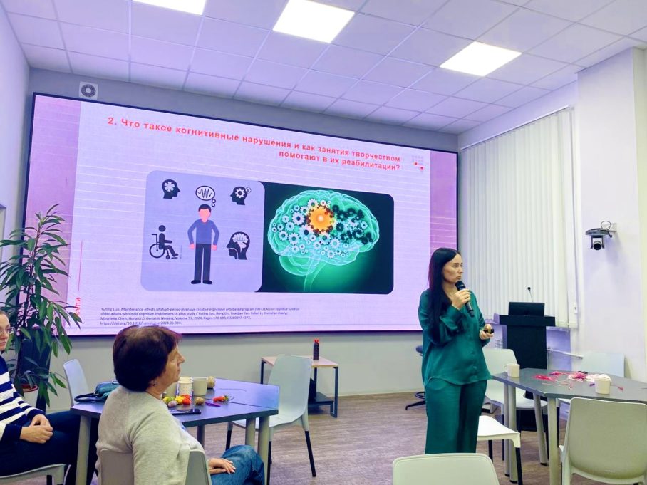 «Наш мозг состоит из трёх блоков: первый блок — энергетический или регуляторный. Отвечает за поддержание бодрствования, уровня активности, тонуса коры головного мозга. Это базисная система активации мозга, необходимая для нормальной работы остальных функциональных блоков. Второй — отвечает за обработку сенсорной информации (зрительной, слуховой, тактильной и т. д.). Здесь происходит восприятие, анализ и хранение поступающей информации. И третий — отвечает за планирование действий, постановку целей, контроль за выполнением действий и коррекцию ошибок. Это высший блок, связанный с осмысленной, целенаправленной деятельностью человека, включающий процессы самоконтроля и произвольной регуляции поведения», — рассказала Антонина Мерц. Когнитивные нарушения возникают именно в последнем блоке, и для реабилитации и профилактики нарушений вязание является одной из наиболее подходящих практик.