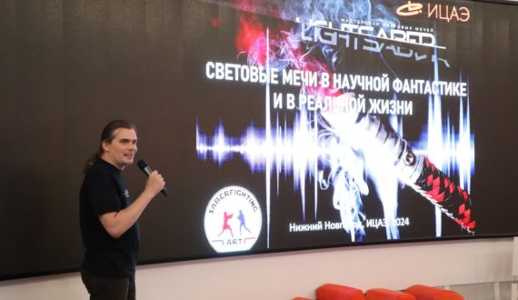 После чего началась лекция о саберфайтинге (технике боя на световых мечах), проведённая представителями мастерской «Lightsaber». Они рассказали о том, как устроен световой меч из Вселенной «Звёздных войн». Кроме того, в этот вечер у гостей центра была возможность увидеть соло-импровизацию Антона Стейскала, спортсмена из студии «Саберфайтинг Арт». Он продемонстрировал работу светового меча, показав артистическое фехтование в стилистике «Звёздных Войн».