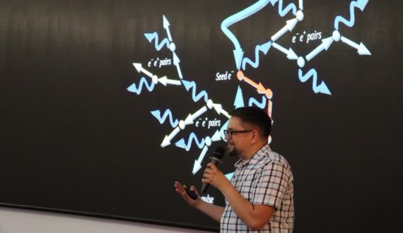 «Согласно популярным космологическим теориям, наша Вселенная могла возникнуть из квантовых флуктуаций вакуума — микроскопических колебаний, заполняющих пространство. Эти идеи существуют уже почти сто лет, однако их подтверждение остаётся сложной задачей, требующей использования новейших научных методов и технологий, включая лазерные системы сверхвысокой мощности, – рассказал спикер. – Представьте, что у вас есть лупа размером с пустыню Гоби. С её помощью вы фокусируете солнечное излучение в пятно размером меньше толщины волоса. Что будет происходить в фокусе? Изучением этого мы и занимаемся».
