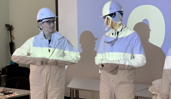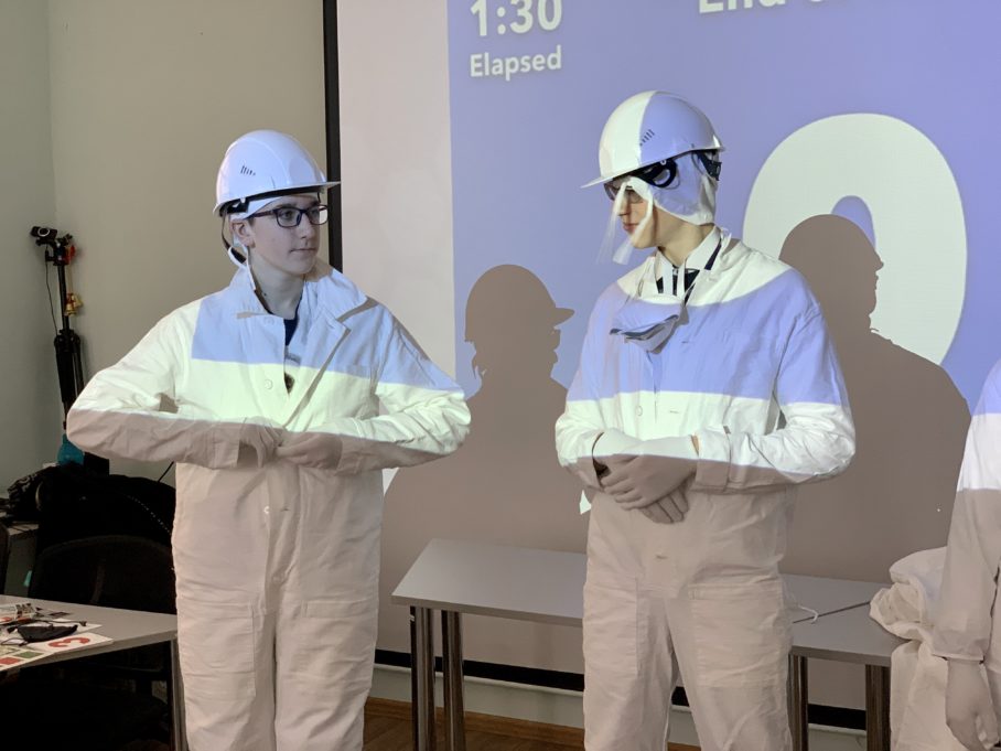 Как итог квеста, участники практиковались в том, как правильно носить спецодежду атомщика, и на скорость одевали одного из участников команды в соответствии с правилами.