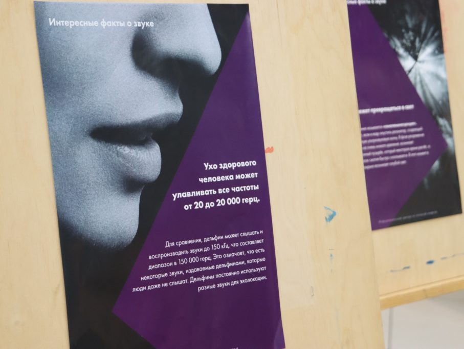 Участников вечера также ждали мастер-классы по расчёту уровня шума в помещении, мини-выставка по интересным фактам о звуке и эксперименты, позволяющие увидеть звуковые волны от звучания различных предметов на большом экране.