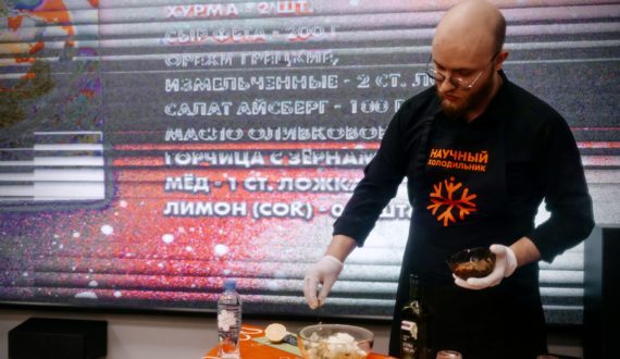 В ИЦАЭ Новосибирска решили предложить гостям вкусную альтернативу популярным закускам – салат «Оранжевое настроение», в котором мандарины, хурма и сыр «Фета» заправляются нежным и пикантным соусом. Необычное блюдо, приготовленное системным администратором Яковом Винсом, понравилось гостям.