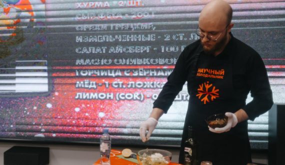 В ИЦАЭ Новосибирска решили предложить гостям вкусную альтернативу популярным закускам – салат «Оранжевое настроение», в котором мандарины, хурма и сыр «Фета» заправляются нежным и пикантным соусом. Необычное блюдо, приготовленное системным администратором Яковом Винсом, понравилось гостям.