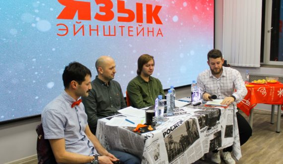 Продолжился вечер обсуждением научных новостей в формате научно-популярного ток-шоу «Язык Энштейна». Кандидат биологических наук, заведующий лабораторией генетики развития ИЦиГ СО РАН Нариман Баттулин, кандидат физико-математических наук, руководитель лаборатории астрономии КЮТ СО РАН, доцент НГПУ, ведущий математик ИТПМ СО РАН Дмитрий Эпштейн и младший научный сотрудник ИСиЭЖ СО РАН Алексей Маслов прокомментировали некоторые события, произошедшие в мире науки в 2021 году.
