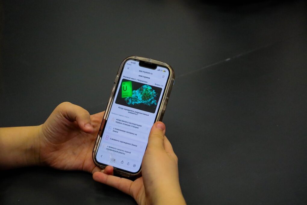 Последняя станция квеста – «Приложение ИЦАЭ». Здесь участники узнали о веб-приложении сети ИЦАЭ и прошли викторину, за которую сразу получили баллы – их можно копить, посещая мероприятия центра и проходя опросы и викторины после них. За баллы гости могут получать сувениры от ИЦАЭ.