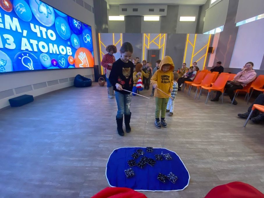 Дети проходили испытания, отгадывали загадки про домовёнка Кузю и Нафаню, выполняли задания Лешего и Кикиморы. В итоге маленькие гости помогли героине — хозяйке древнерусской избы подружиться с домовым, а домовому найти и спасти лучшего друга. А ещё ребята узнали, как нужно задобрить домового, чтобы он перестал проказничать.