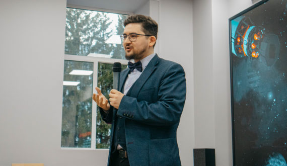 Спикер пояснил, что чёрная дыра – область пространства-времени, гравитационное притяжение которой настолько велико, что покинуть её не могут даже объекты, движущиеся со скоростью света, в том числе кванты самого света. Но в то же время сейчас существует теория о том, что гравитация – это не просто взаимодействие между материальными телами, обладающими массой, а искажение пространства: «Спутник всегда летит по прямой, но само пространство искривлено, поэтому нам кажется, что он летит по дуге», – прокомментировал спикер.