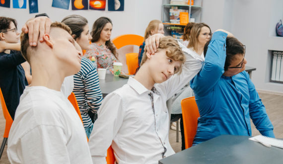 Врач также обозначила важность лечебной физкультуры в течение всего дня. Она продемонстрировала инвентарь, который можно использовать во время работы для разгрузки позвоночника – балансировочную подушку. Для снижения мышечного напряжения можно делать миофасциальный релиз и постизометрическую релаксацию. Миофасциальный релиз – это серия упражнений, позволяющих сохранять гибкость и подвижность суставов, а постизометрическая релаксация основана на поочерёдном расслаблении и растягивании мышц и способствует избавлению от болевого синдрома и мышечных зажимов.