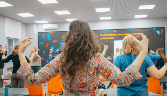 Все желающие сделали комплекс упражнений в динамике прямо во время лекции и сняли напряжение, накопившееся за день: «Особенно мне понравилась практическая часть лекции. Я ежедневно делаю зарядку, поэтому увидеть новые упражнения лечебного комплекса для меня было важно. Для меня стал открытием некоторый спортивный инвентарь и медицинские термины», – рассказала Людмила Бигеева.