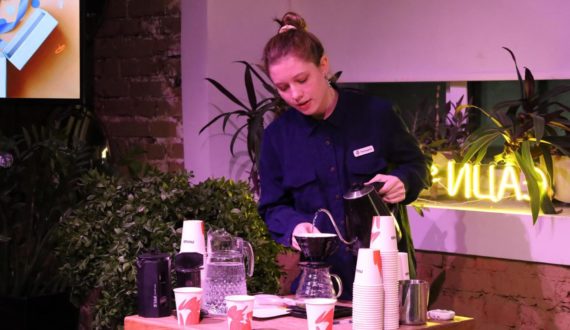 Вечер начался с мастер-класса «Как правильно пить кофе» от кофейни «Лица». Бариста кофейни рассказали о колесе вкусов и ароматов этого напитка, а ещё показали альтернативные методы заваривания кофе. Гости узнали, что нужно для отличного начала дня: весы, чайник с кипятком, воронка с фильтром, колба, кофемолка с ароматными зёрнами и хорошее настроение!