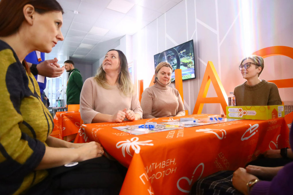 Открыла первый день фестиваля профориентационная игротека с различными настольными играми. В ней, помимо фирменных игр сети ИЦАЭ, были представлены настолки из серии «Мир профессий будущего». При помощи таких настольных игр можно проводить различные мероприятия и знакомить учащихся с «Атласом новых профессий», а также достоинствами и недостатками разных специальностей. Сами педагоги с удовольствием провели время за играми «Курьер, прощай», «Компас новых профессий» и «Профессиональное лото».