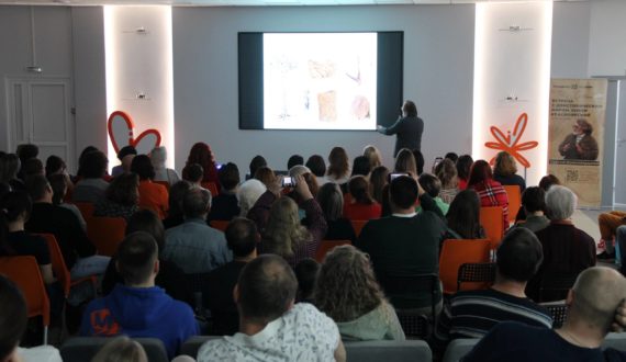 Перед лекцией прошла выставка-экскурсия с мини-лекцией «Окаменелости России: от “чёртовых пальцев” до прадедушки тираннозавра» от эксперта ИЦАЭ, биолога, палеореконструктора Якова Колесникова. Он рассказал, какими многообразными формами представлена палеонтологическая летопись России.