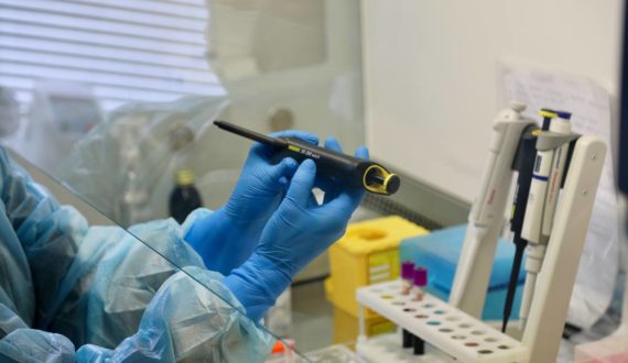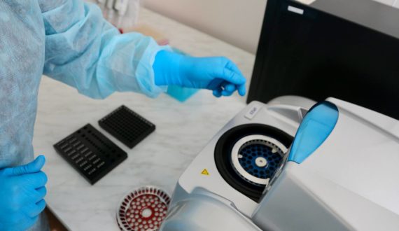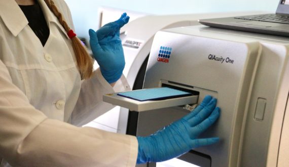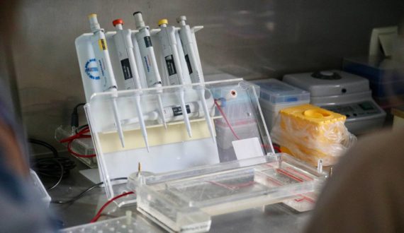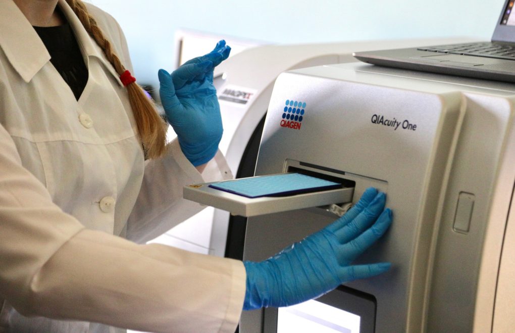 В лаборатории гостей встретила Ирина Марченко, она показала, как можно измерить качество и количество ДНК. «Качество ДНК мы оцениваем в агарозном геле с использованием метода электрофореза. Образцы ДНК заносим в лунки геля и под влиянием электричества молекула ДНК, окрашенная специальным красителем, движется от одного полюса к другому. Далее мы располагаем гель на специальную поверхность, через которую проходит ультрафиолетовый свет, в нем полосочки ДНК в геле светятся с разной интенсивностью, по которой можно судить о качестве и количестве ДНК. Существует также прибор, с помощью которого можно максимально точно измерить количество ДНК, – это спектрофотометр».