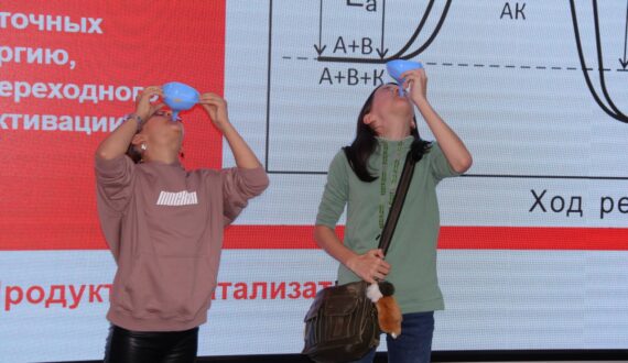«Катализ – это возбуждение химических реакций или изменение их скорости под влиянием веществ-катализаторов, многократно вступающих в промежуточное химическое взаимодействие с участниками реакции и восстанавливающих после каждого цикла промежуточных взаимодействий свой состав. Именно на катализе основано 90% всей химической промышленности, существуют также вещества — катализаторы, которые изменяют скорость химической реакции, но сами при этом не расходуются. Катализаторы в выхлопной системе автомобиля снижают содержание токсичных веществ в отработавших газах. Основной компонент жевательной резинки – подсластитель сорбит и ксилит также получают с помощью катализаторов», – рассказал спикер.