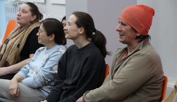 После лекции с перформансом «Сцена первая» выступили актёры из подросткового театра импровизации «Живые». Вместе со зрителями они вспоминали истории из жизни, в которых случился первый опыт сцены, публичного выступления, а затем проигрывали эти истории. «Я пришла на сегодняшний вечер, чтобы узнать о приемах работы с аудиторией. Важно было посмотреть именно на другие приёмы, не классические, хотела также написаться энергией. Я увидела нестандартный формат лекции и ухожу сегодня наполненная», − поделилась впечатлениями гостья ИЦАЭ Нина Карсакова.