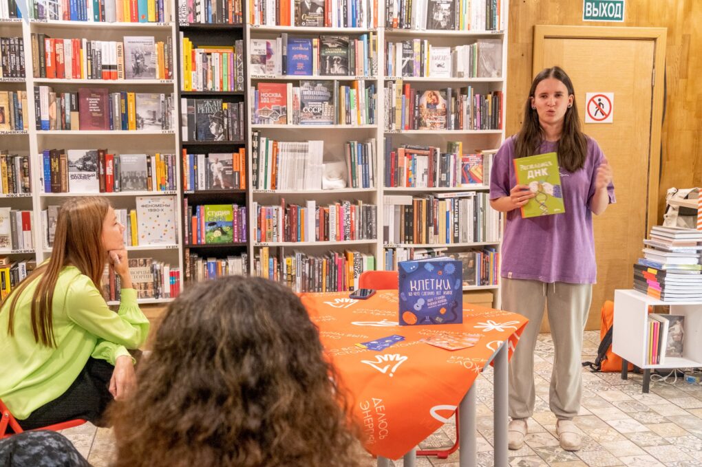Продолжился вечер презентацией книги «Расплетая ДНК: увлекательный путеводитель по генетике» магистра направления «Геномика и биоинформатика», научного журналиста в университете «Сириус», редактора портала «Биомолекула» Элины Стояновой.