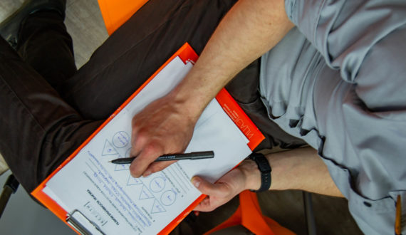 Развить дивергентное мышление можно с помощью специальных упражнений, которые Максим Гревцев подготовил для участников мастер-класса. Посетителей ждали самые разные задания: нужно было составить предложение из семи и более слов, начинающихся с одной буквы, придумать ассоциации к простым геометрическим фигурам, создать несколько вариантов названия для четырёх рисунков, нарисовать вазу с яблоками, а затем по методике «Scramper» ещё раз нарисовать её, но с использованием новых инструментов. Кроме того, нужно было придумать новое слово и дать ему толкование, а ещё за несколько минут придумать рисунок, в котором цифры от 1 до 9 соединились бы в единую картину.