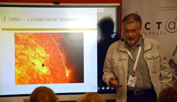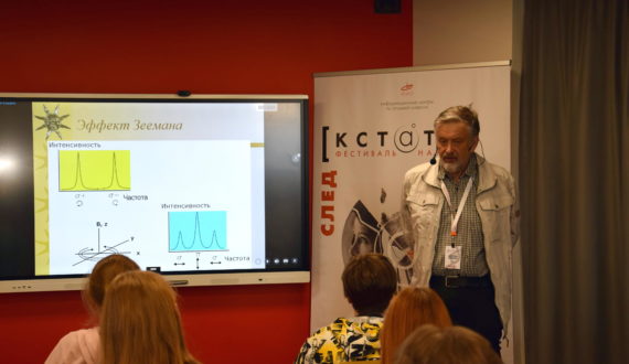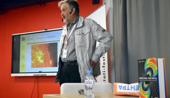 Дмитрий Соколов, доктор физико-математических наук, профессор МГУ, выступил с лекцией «Как наблюдают магнитные поля Солнца, звёзд и галактик». Эксперт начал с пояснения разницы между постоянными магнитами, электромагнитами и магнитным полем. К примеру, недалеко от Железногорска находится бассейн с залежами железной руды – Курская магнитная аномалия, которая является постоянным магнитом. Однако это не имеет ничего общего с магнитным полем Земли.