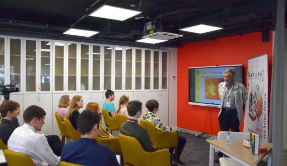 «Нанотехнология – это наука на стыке наук. На мой взгляд, это не отдельный предмет и направление, а возможность полностью воспринимать информацию. Нанотехнология объединяет все науки в единое целое», — начал свое выступление эксперт. Далее Дмитрий рассказал на примере открытий, удостоенных Нобелевской премии, что такое нанотехнологии и зачем вообще они нужны. Например, углеродные нанотрубки применяются в гибких дисплеях, а гетероструктура необходима для работы лазерной указки или СD-диска.
